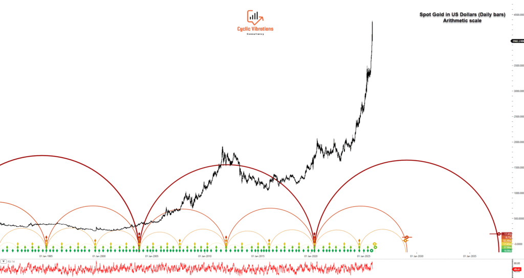 The rally witnessed in the Gold market has been, by any measure, truly remarkable, validating the long-wave cyclical analysis previously discussed and mentioned to clients almost a decade ago. However, based on the Kondratieff Wave projections—which anticipate the ultimate mania phase around 2032—we assert with confidence that the cyclical zenith has yet to be reached. The most dynamic and profitable phase of this appreciation is still to come! 🚀