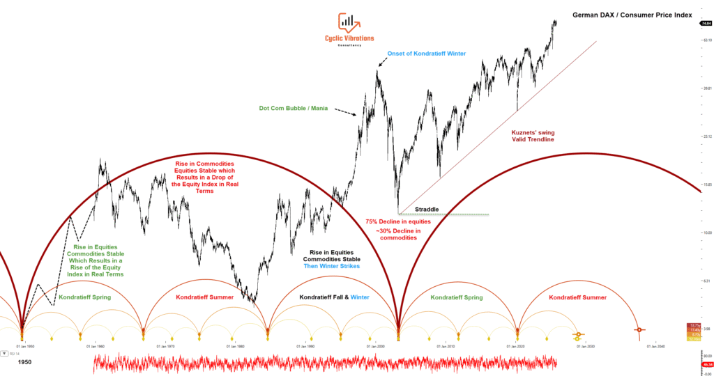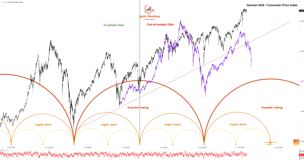 Application of the Economic Wave Theory on the German DAX adjusted for inflation