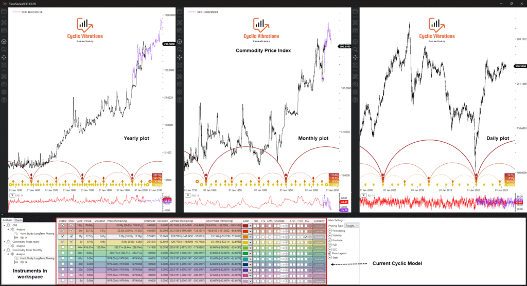 By accurately determining the current period mean and phase based on the existing cyclic model, the software pinpoints precisely where we are likely situated within these great waves.